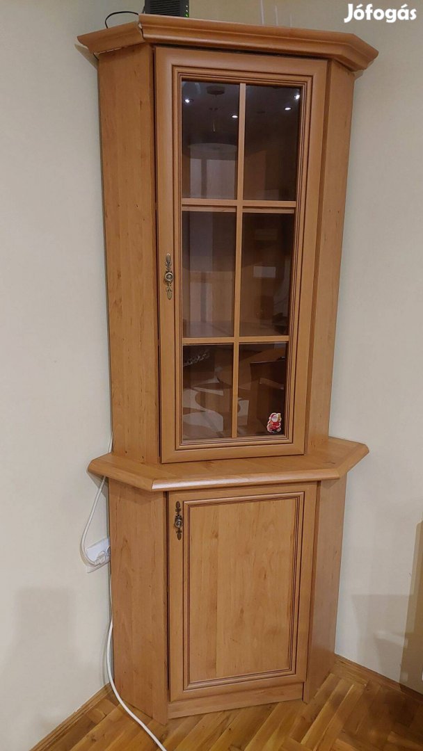 Eladó a képen látható tálalószekrény. Használatból eredő apró karcolások vannak rajta. Alsó szekrény két polcos. Mérete: 64x64 cm és 2 m magas.