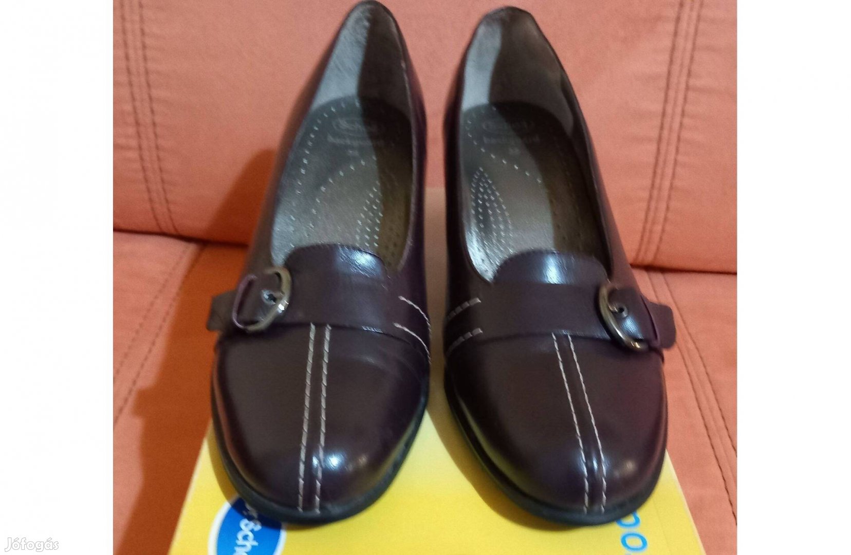 Eladó a fenti 39-es Scholl márkájú, lábfájás miatt csak szobában kipróbált, de utcán egyszer sem használt bőrcipő. Felsőrésze zárt, a rajta lévő csat csak dísz. Abszolút kényelmes és könnyű cipő.