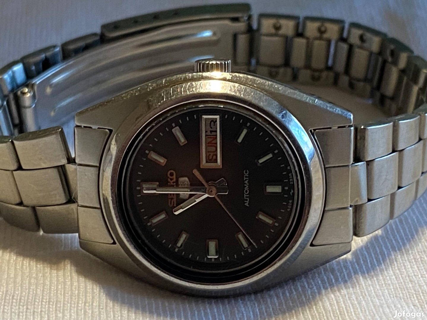 Eladó nagyon szép Seiko 5 automata óra , manuálisan is felhúzható , felhúzás után járási idö kb 24 óra . Automata óra tehát úgy jár ahogy hordjuk . Az óra nagyon jó állapotú . A számlap fekete a szíj kb 15 cm nagyságú csuklóra is jó . A postázás megoldható elöre utalás vagy utánvétel, Fox , Gls is müködik .Ha van kérdése szivesen válaszolok.