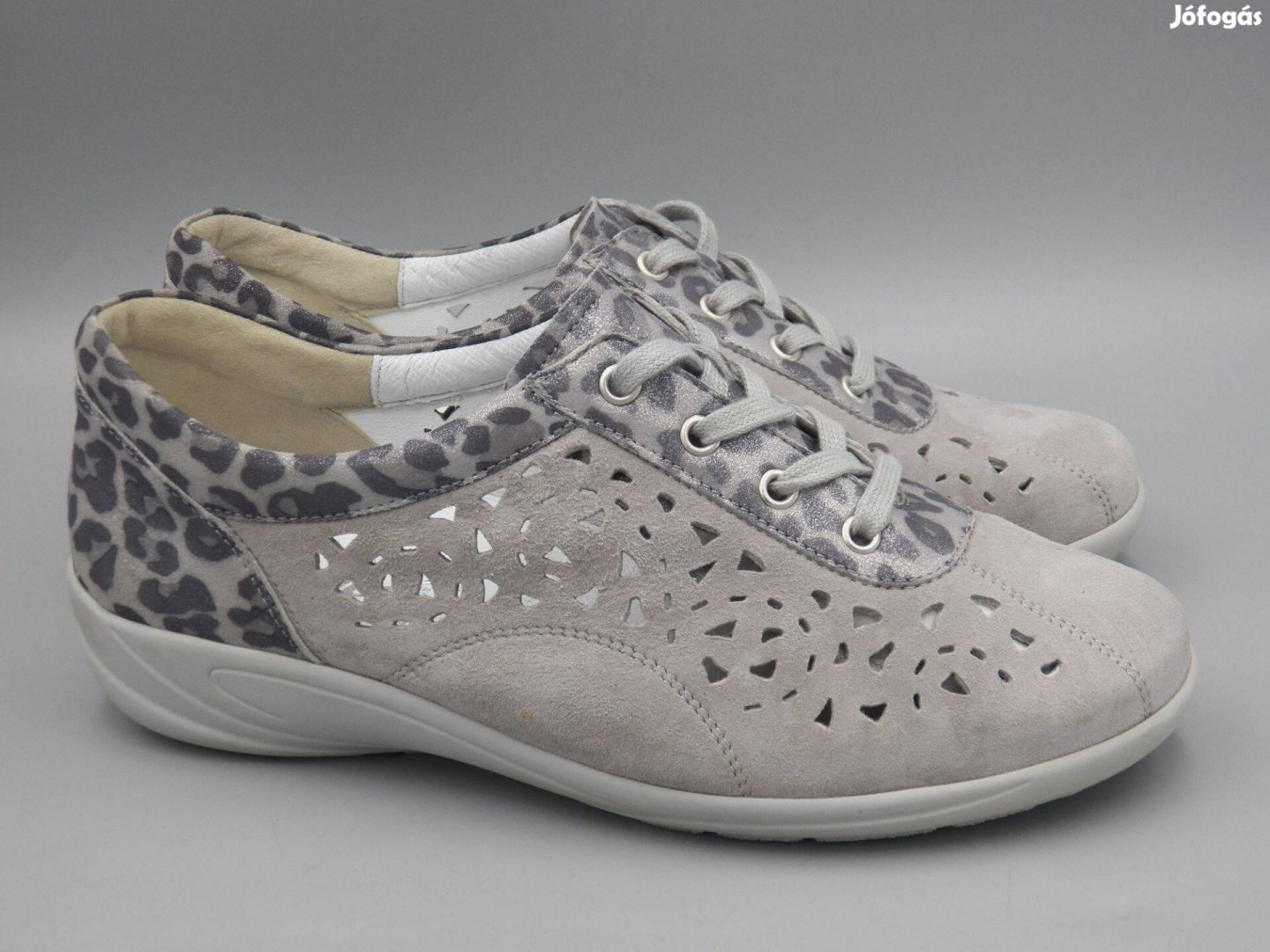 Keveset használt, hibátla állapotú Semler Luftpolster valódi bőr komfort félcipő. Felsőrésze velúrbőr, kivehető talpbetéte is bőr. Lyukacsos fazonú.