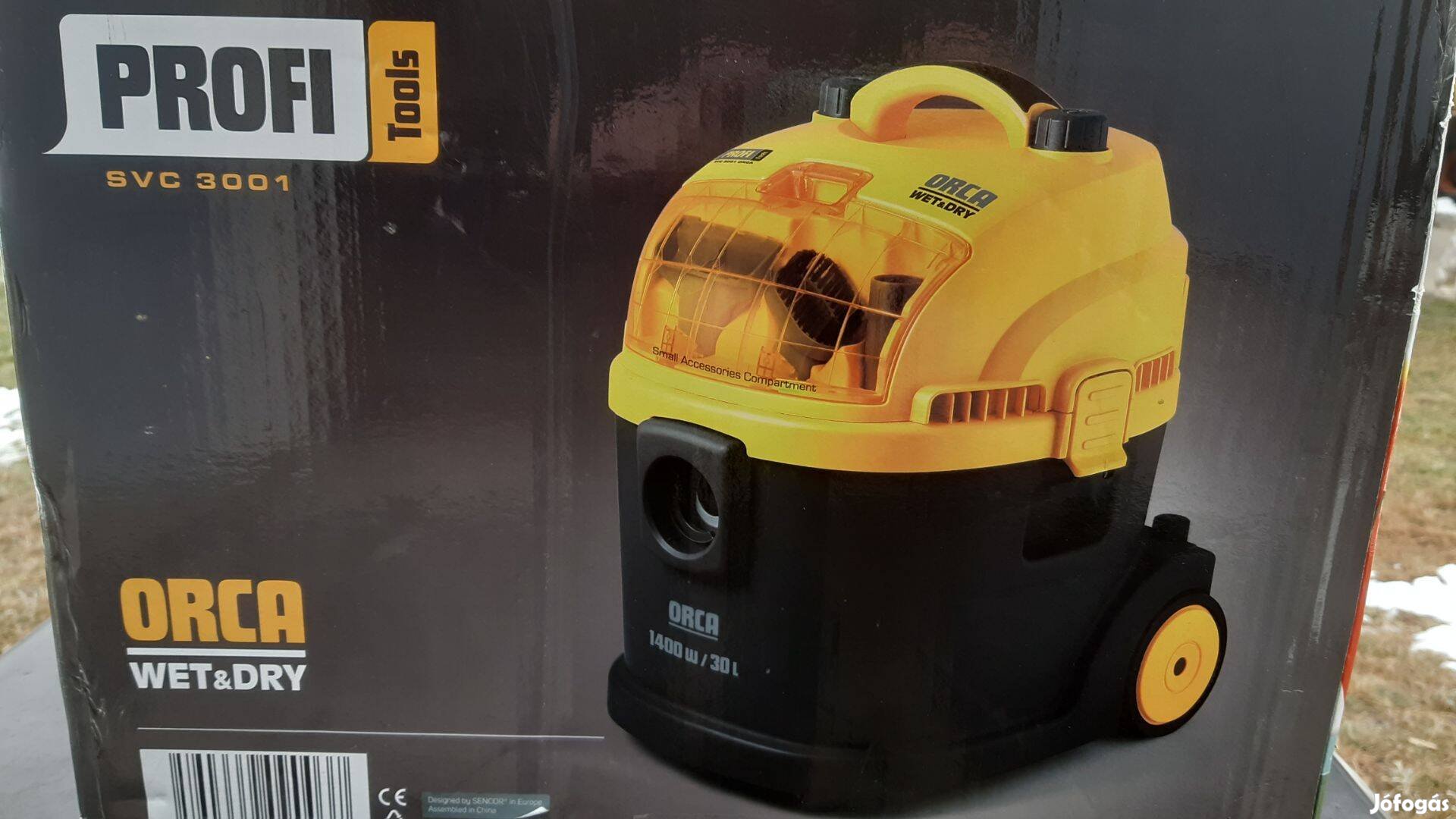 Eladó Sencor Orca SVC 3001 tipusú száraz - nedves porszívó. Max teljesítmény 1400 watt. Porzsákkal használható vagy azt kivéve folyadék felszívásra is alkalmas. Erős szívóhatású, nagy tartály kapacitással rendelkező gép. Több pótfej is van hozzá, ami a gép tároló rekeszében van elhelyezve, így mindíg kéznél van.