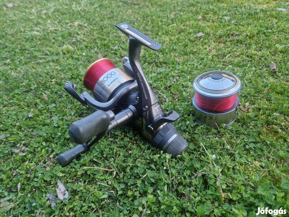Eladóvá vált gyűjteményem néhány darabja, mint például a képeken szereplő manapság már ritka Shimano Super Baitrunner Xtea 8000 nyeletőfékes orsó. Bojlis vagy erősebb feeder orsóként is tökéletes. A karon látható némi kopás, a dobokon pedig festékhalványodás. Szép futású, tökéletes működésű. Fém pótdobja van, doboza nincs. 39.000 Ft.