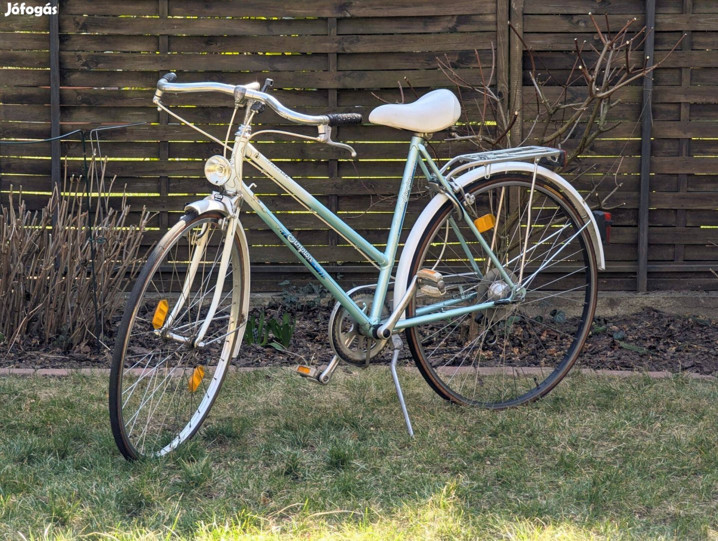 Eladó a képeken látható bicikli. Funkciónálisan rendben van: gumik, fék, váltó működik. Esztétikai hibái: itt-ott kisebb kopások látszanak a vázon, az egyik markolat sérült, azt pótolni kell.