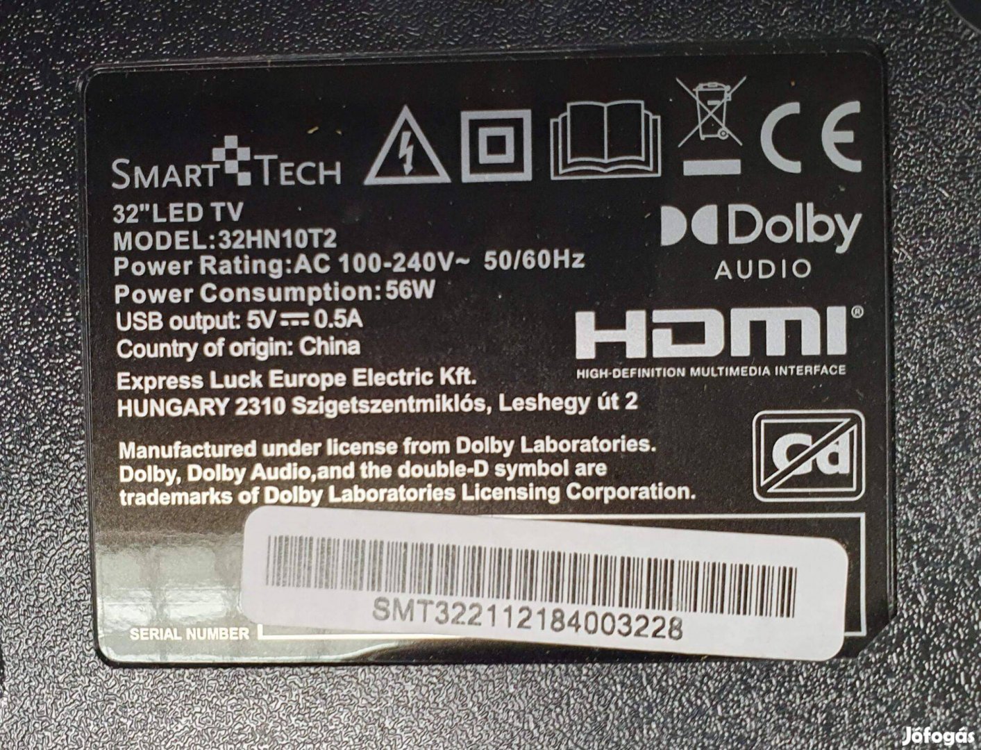 Smarttech 32HN10T2 LED LCD tv hibás törött alkatrésznek