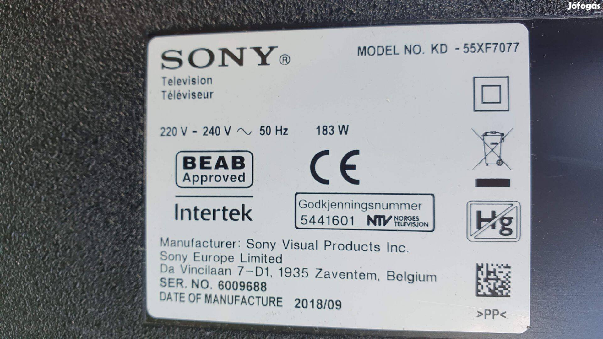 Sony KD-55XF7077 LED LCD tv hibás törött alkatrésznek eladó