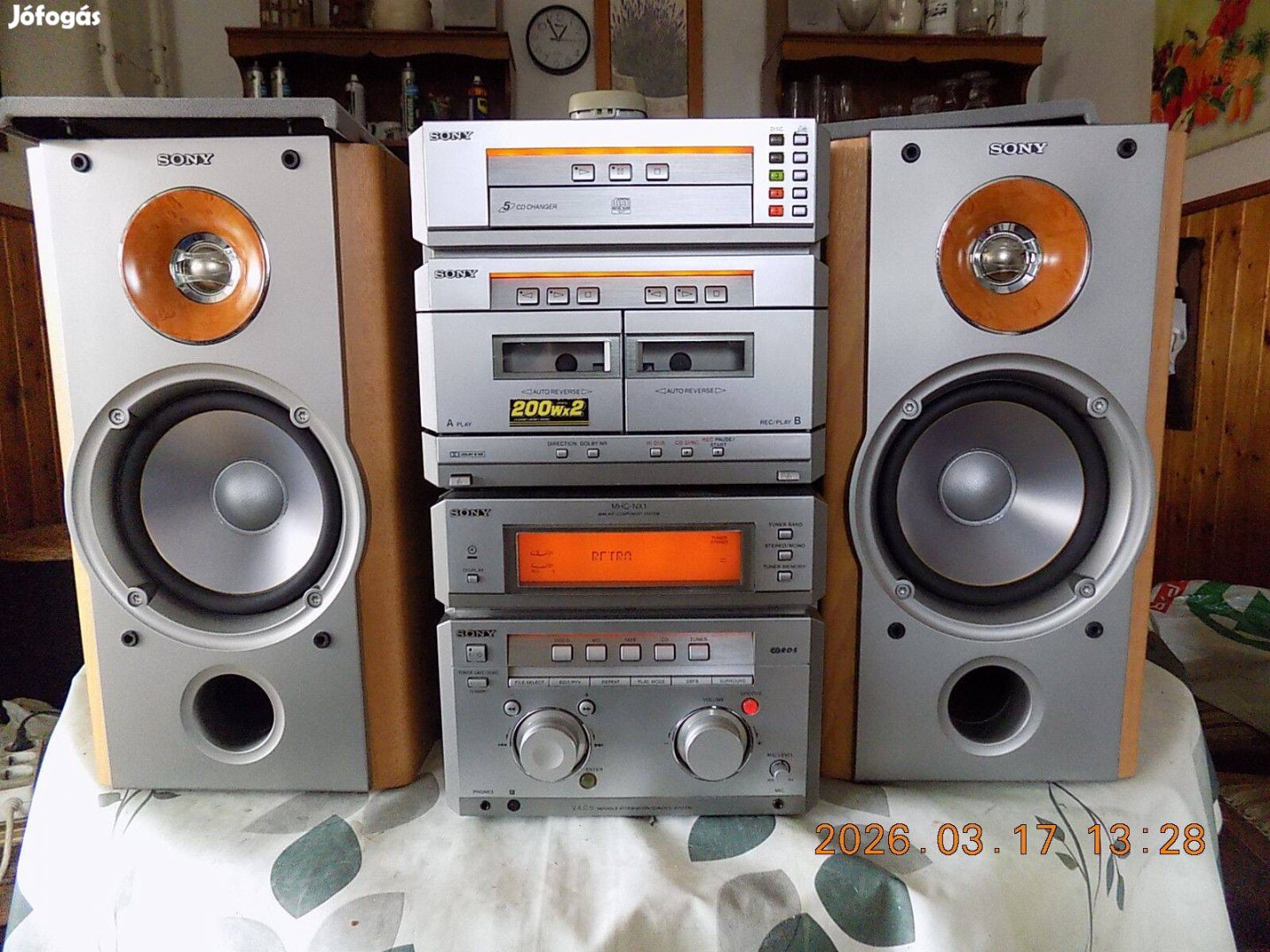 Eladó nagyteljesítményü Sony NX1 hifi. CD,RDS rádió, több aux bemenet. Nagy hangerő,szuper hangfalak.Mélyhangkiemelés. A cd rész ugrál,tisztítandó. A rádió és az aux jól működik. A kijelző olvasható ami ritkaság. Ventillátoros végfok..Nagy nehéz darab. Nézze meg a többi készülékemet is