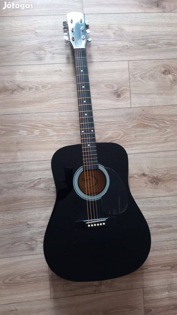 Eladó egy fekete színű Squier SA-105 akusztikus gitár. Masszív felépítésű, jól tartja a hangolást, és nagyon barátságos választás.