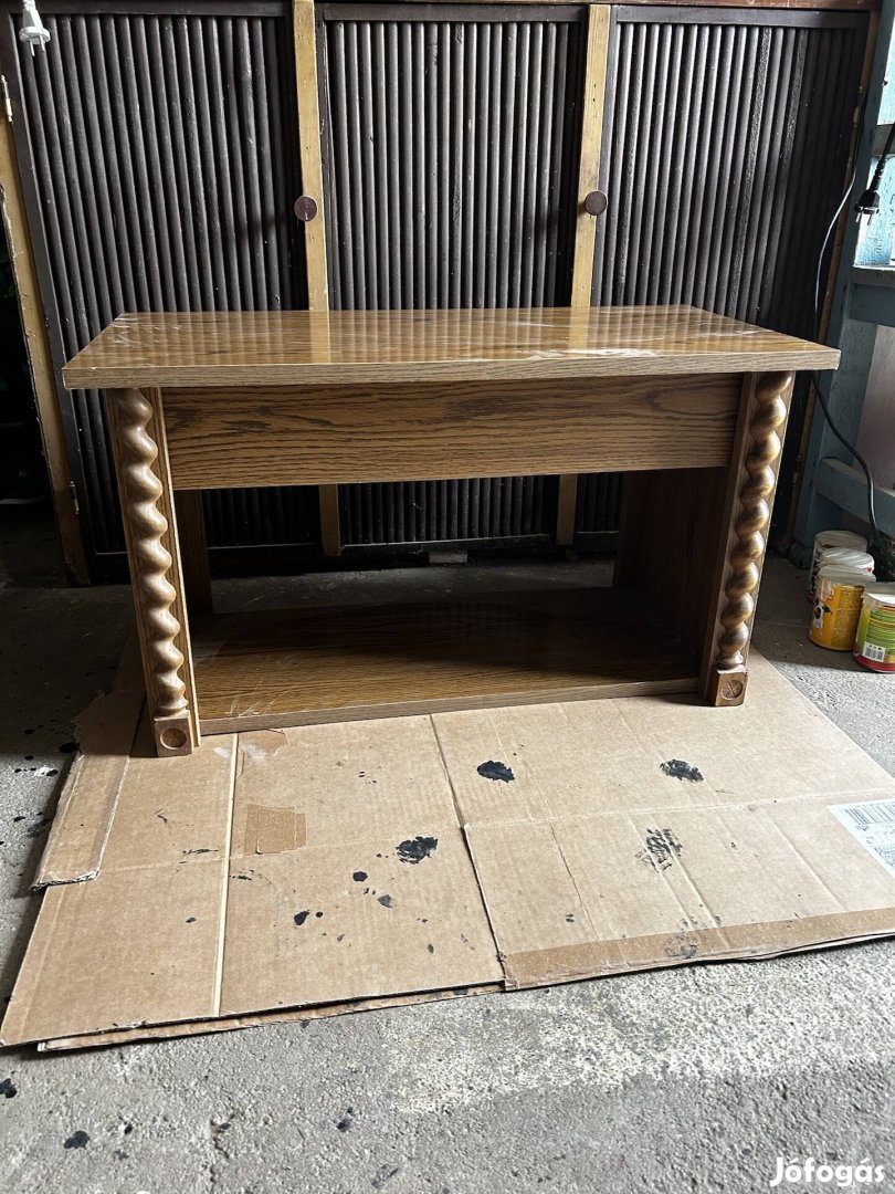 Szép fa erezettel, dekoratív, csavart lábakkal. Stabil szerkezetű, jól terhelhető.
