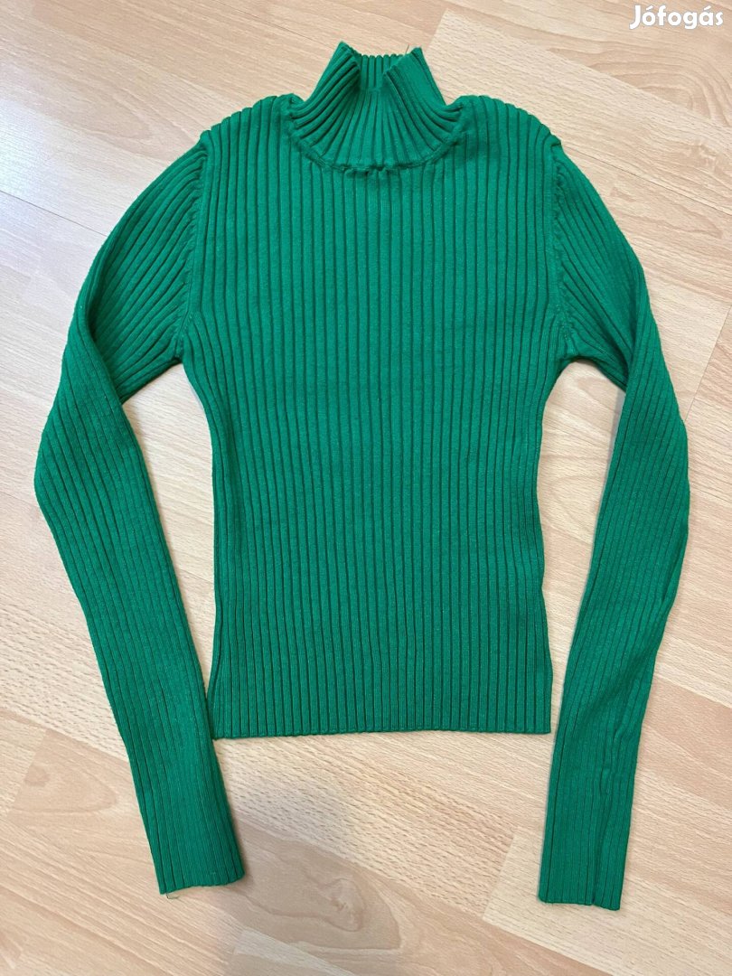 Stradivarius - Gyönyörű zöld, hosszú ujjas, garbós pulcsi, rövid derék megoldással. Rugalmas anyag, nyújtható.