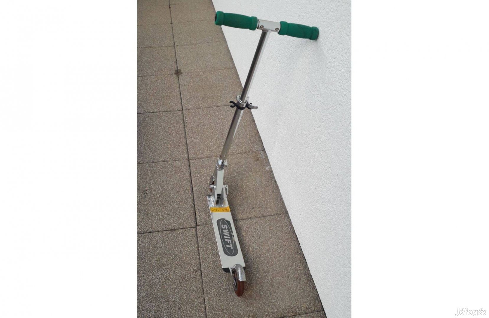Eladó a képen látható jó állapotú, stabil, alumínium Swift roller. Könnyen szállítható, mivel összecsukható, és a magassága állítható. A kormányának egyik szivacsán van egy sérülés, de ez nem befolyásolja a használatát.