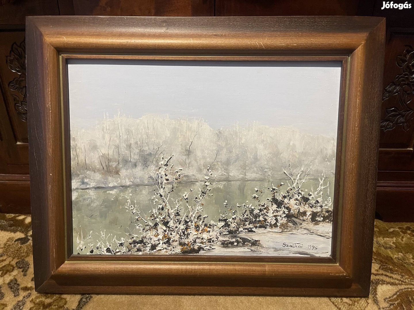 Eladó Szalkai Mária: Havas Tisza-part festménye. 1995