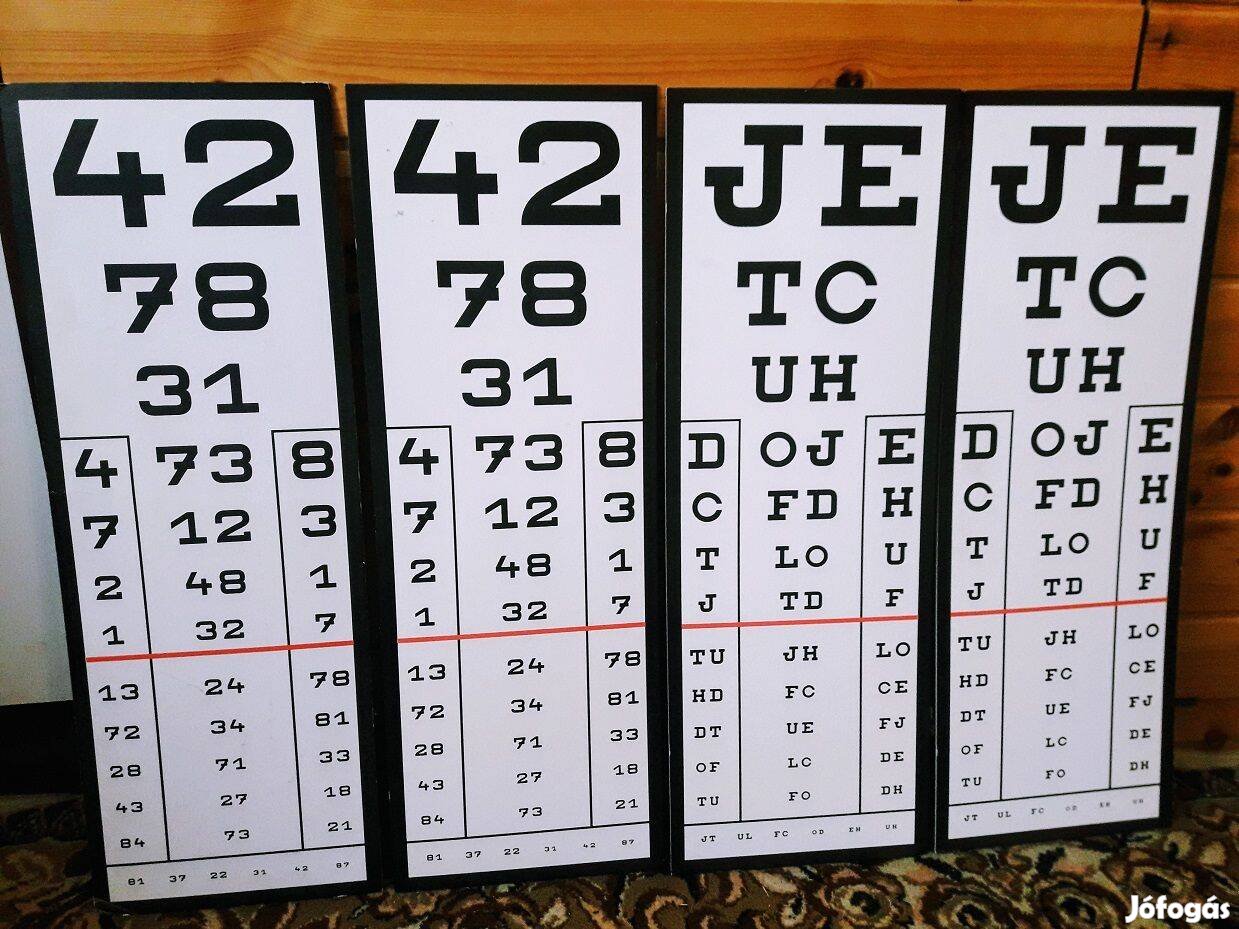 Szemészeti tábla eladó. 64 cm magas, 23 cm széles, 4 mm vastag kartonra kasírozva. 1 db 4.000.- Ft. Kiválóan alkalmas dekorációnak, ajándéknak, legénybúcsúkba, leánybúcsúkba, stb. is. Átvehető Törökbálinton. Előre utalás esetén posta ok. Kérem, telefonon érdeklődjön.