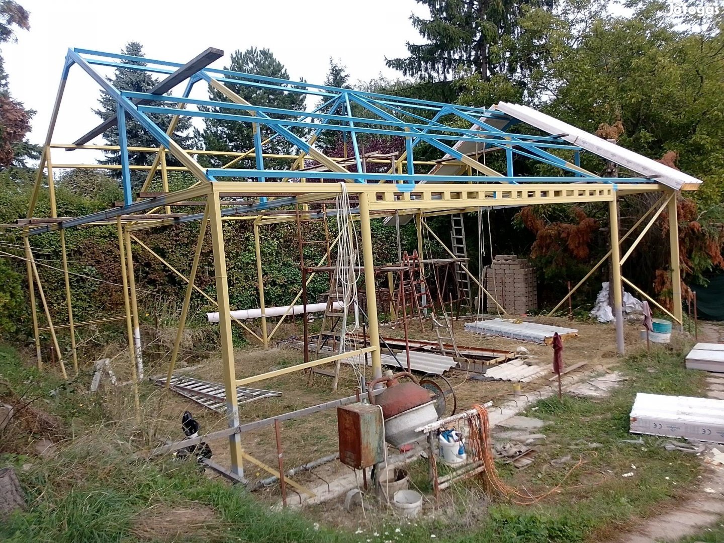 Eladó a képeken látható acélvázas szendvicspanel csarnok. Mérete: 7,5 x 11m, 3m magas az oldala és 5,5 a gerinc.