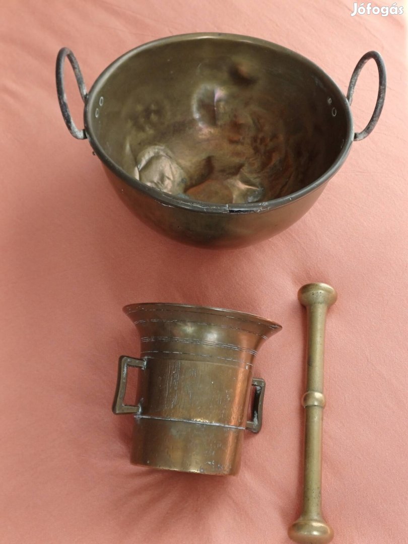 Szép, súlyos antik sárgaréz mozsár és habüst/keverőtál