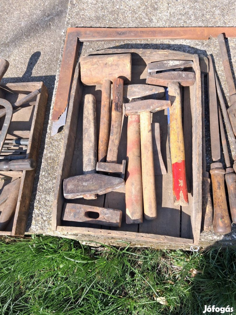 Szerszámok, kulcskészlet, reszelő, kalapács