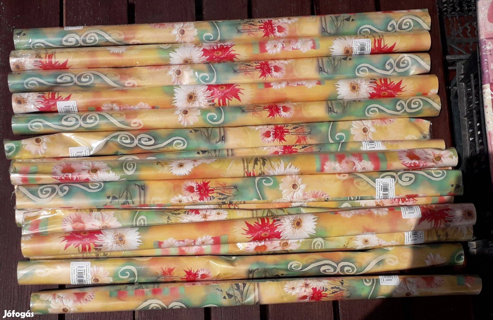 Eladó színes csomagolópapírok, a 2 méter x 70 cm-es henger darabára 250 Ft.