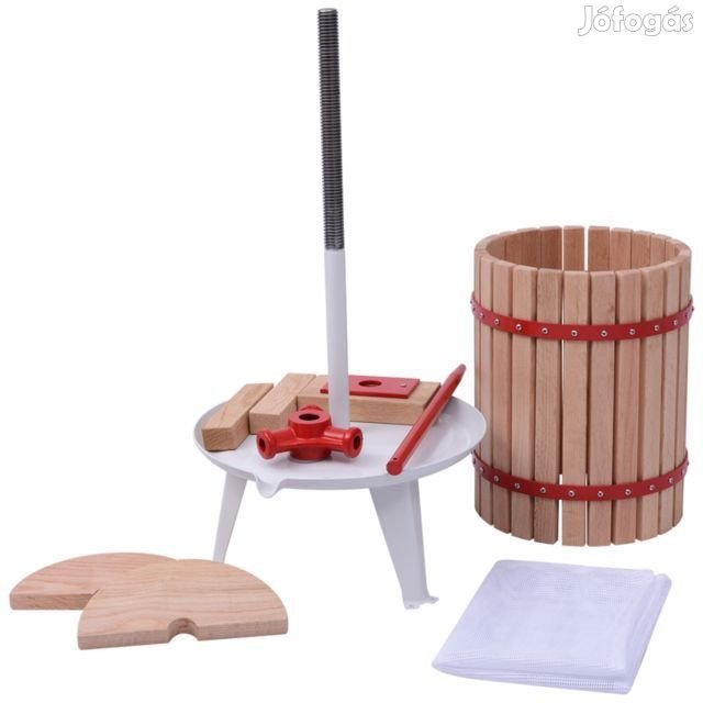 Szőlőprés 18 literes szőlő és gyümölcsprés, méretei: 37 cm szélesség, kosár magassága 36,5 cm, teljes magasság 69,5 cm, tölgyfa lécekkel, 14,8 kg. A termékről AM. számlát állítunk ki, csomagolása sérült!