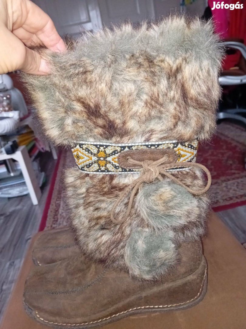 1x viselt cipzáras,barna,szörmés,varrott talpú csizma