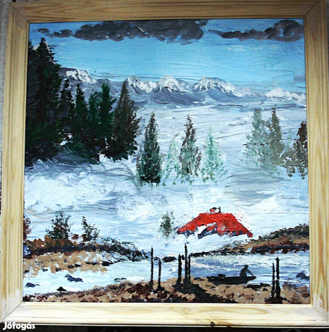 Tájkép, olajj 40X40 Kaschauer Olt menti áradás