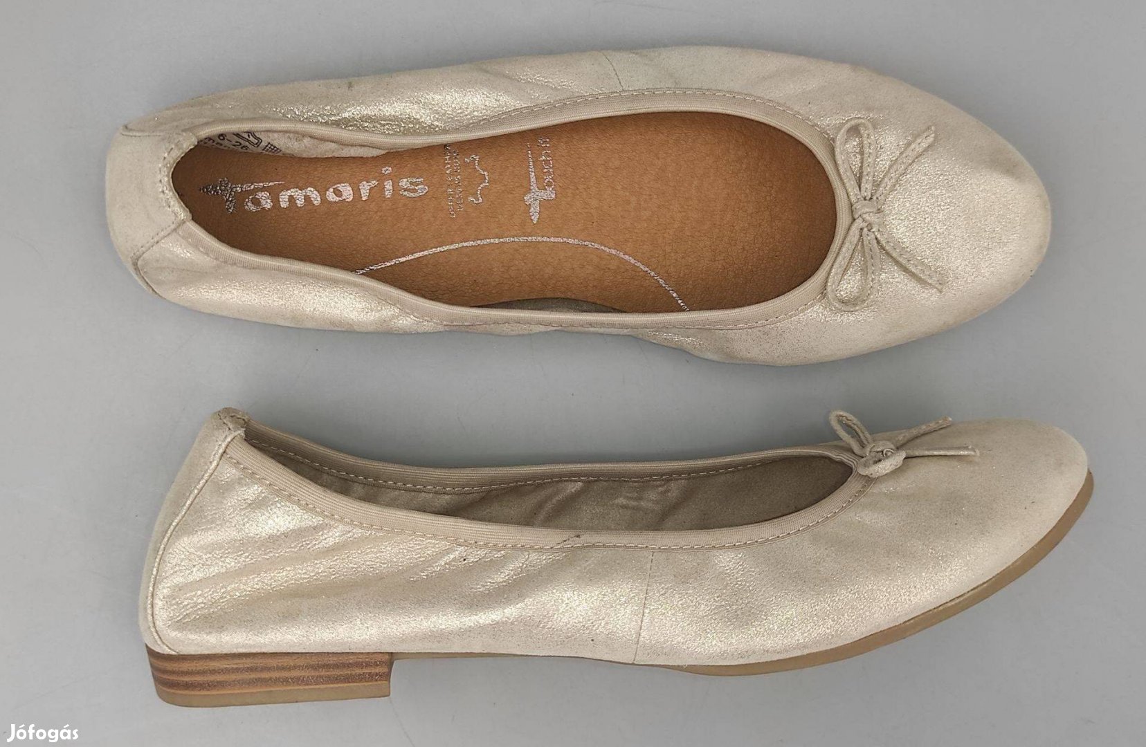 Újszerű állapotú Tamaris valódi bőr balerina. Picit csillogó a felülete, talpa puha, párnázott.