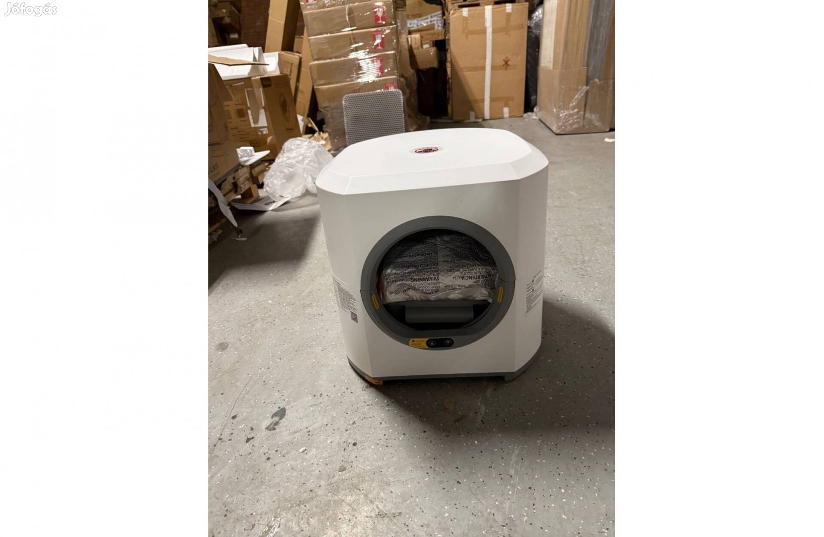 Funkciók: automata tisztítás, zárt kialakítás, könnyebb alomkezelés (a pontos típus/márka nem ismert).