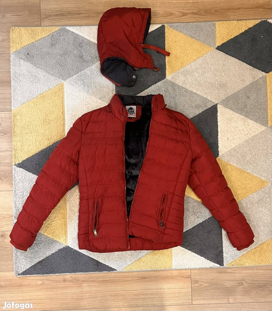 0 fokban elég egy póló alá. Lecipzározható kapucnival, belseje puha anyagból van. Premier Outletben vettem kb 10 éve. Párszor használtam, azóta a szekrényben lógott. Ez látszik is rajta, újszerű állapotban van. A színárnyalatát nem adja vissza a telefon, inkább bordósabb színe van.