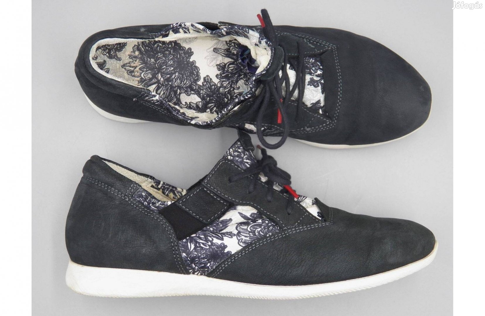 Keveset használt, nagyon szép állapotú Think! kívül-belül bőr félcipő. Talán sötétkék színű, de nem könnyű megállapítani (mindenesetre nem fekete).