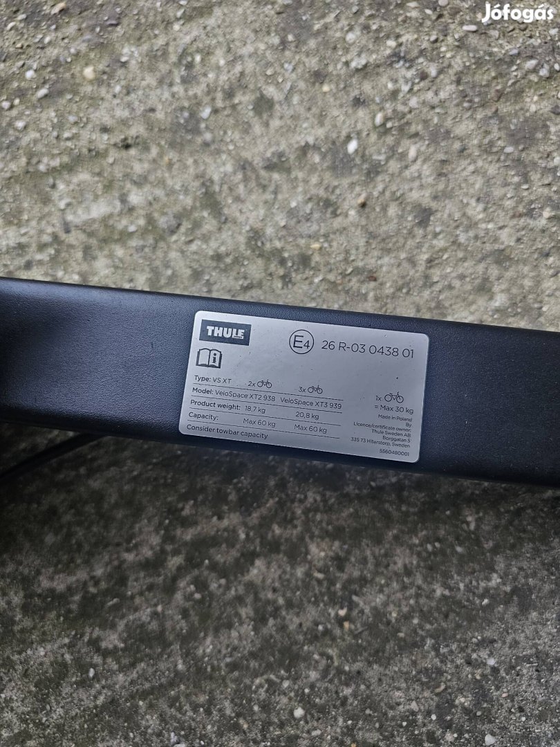 Thule Velospace XT2 típusú vonóhorogra szerelhetó kerékpárszállító újszerű állapotban eladó. Két akár E-Bike szállítására is kiválóan alkalmas. Terhelhetőség 60kg, csatlakozó 13-as. Mérete miatt postázni nem tudom. Átvétel esetleg az M1-es autópálya vonalán megoldható. Az ár fix!