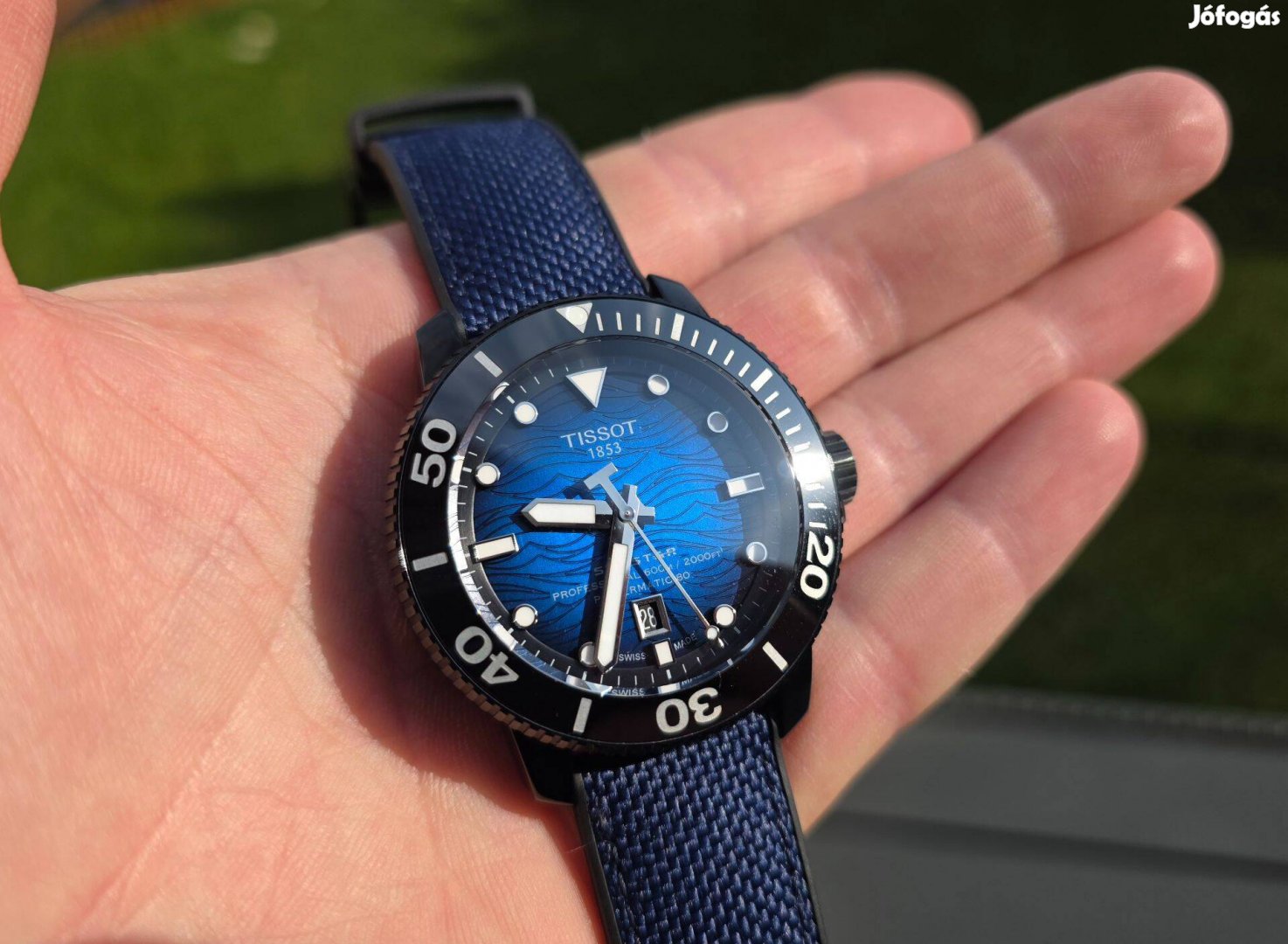 Eladó egy új állapotú Tissot Seastar 2000 Powermatic 80 a legszebb mélykék/fekete színben! 2028.01.31.-ig magyar garanciás, Watch de Luxe-ban vásárolt, számlás, hiánytalan Full set, plusz egy teljesen új gyári szilikon szíjjal!