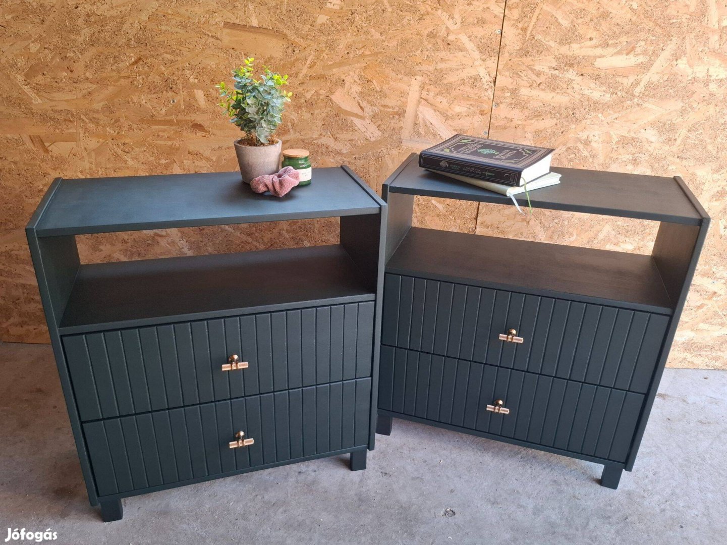 Eladó egy különleges, nagy méretű éjjeliszekrény pár. Tömör fenyőből készültek, egyedi keverésű erdőzöld színt kaptak, és lakkozva lettek a tartósság érdekében.