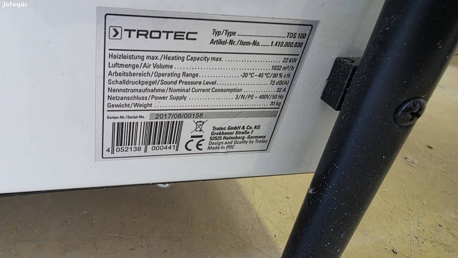 Trotec TDS 100 22kW fűtő test. Szabályozható hőfokozat. 11kW vagy 22 kW mód. 400 V Kábellel eredeti dobozában. Erdőkertes vagy egyeztetés.