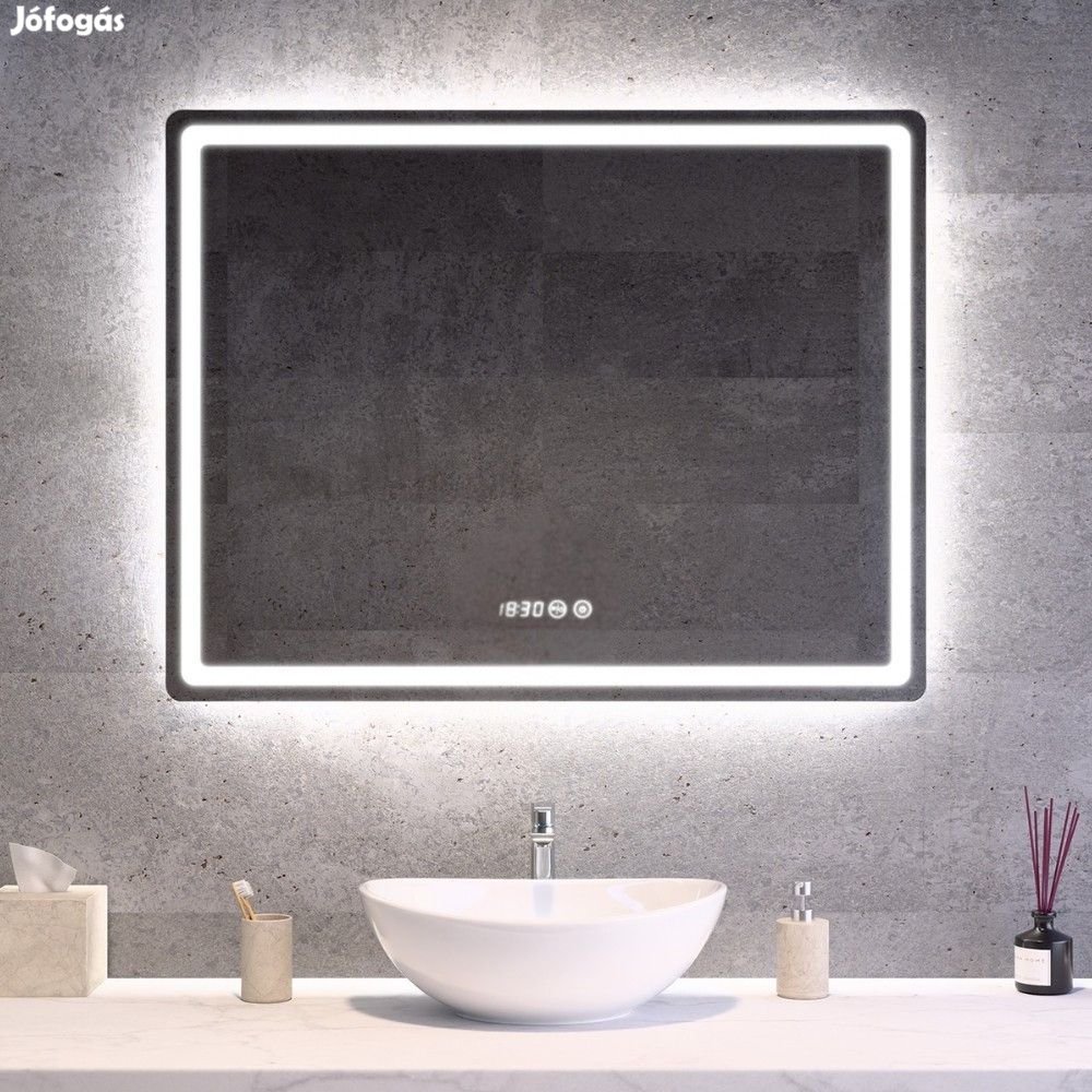 Fürdőszobai LED tükör | Páramentesítő funkció | Beépített óra | Fényerő és színhőmérséklet szabályozás| Kedvező áron | Készletről | Gyors kiszállítással