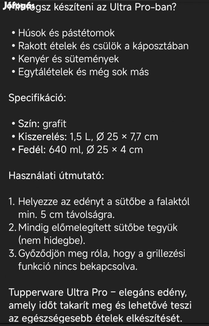 Tupperware Ultra Pro Sütő edény szett 2,5L/1,5L/650ml
