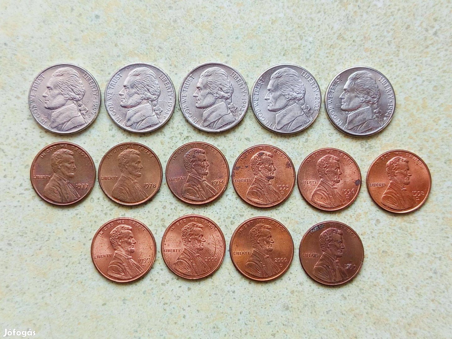 USA 15 db Különböző Érme 1 5 Cents Jefferson Nickel 1977-2003
