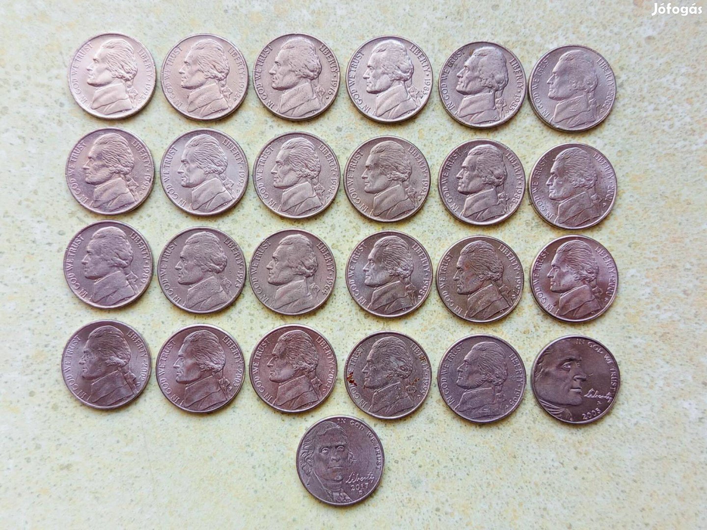 USA 25 db Különböző Érme 5 Cents Jefferson Nickel 1964-2017