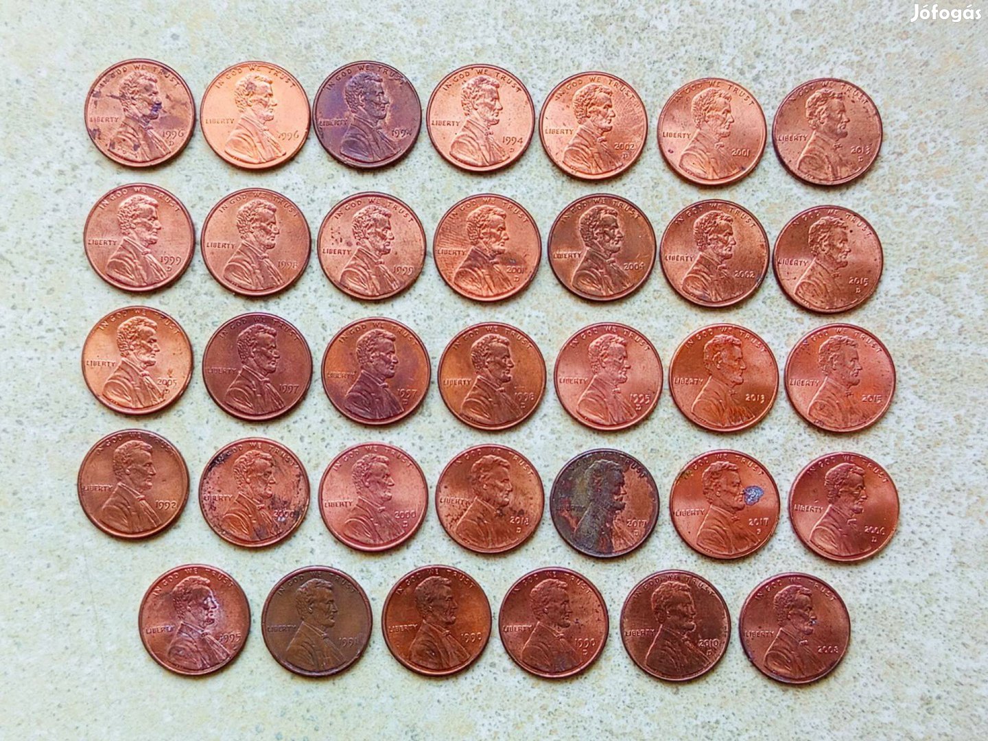 USA 34 db Különböző Érme 1 Cent Lincoln Penny 1990-2018