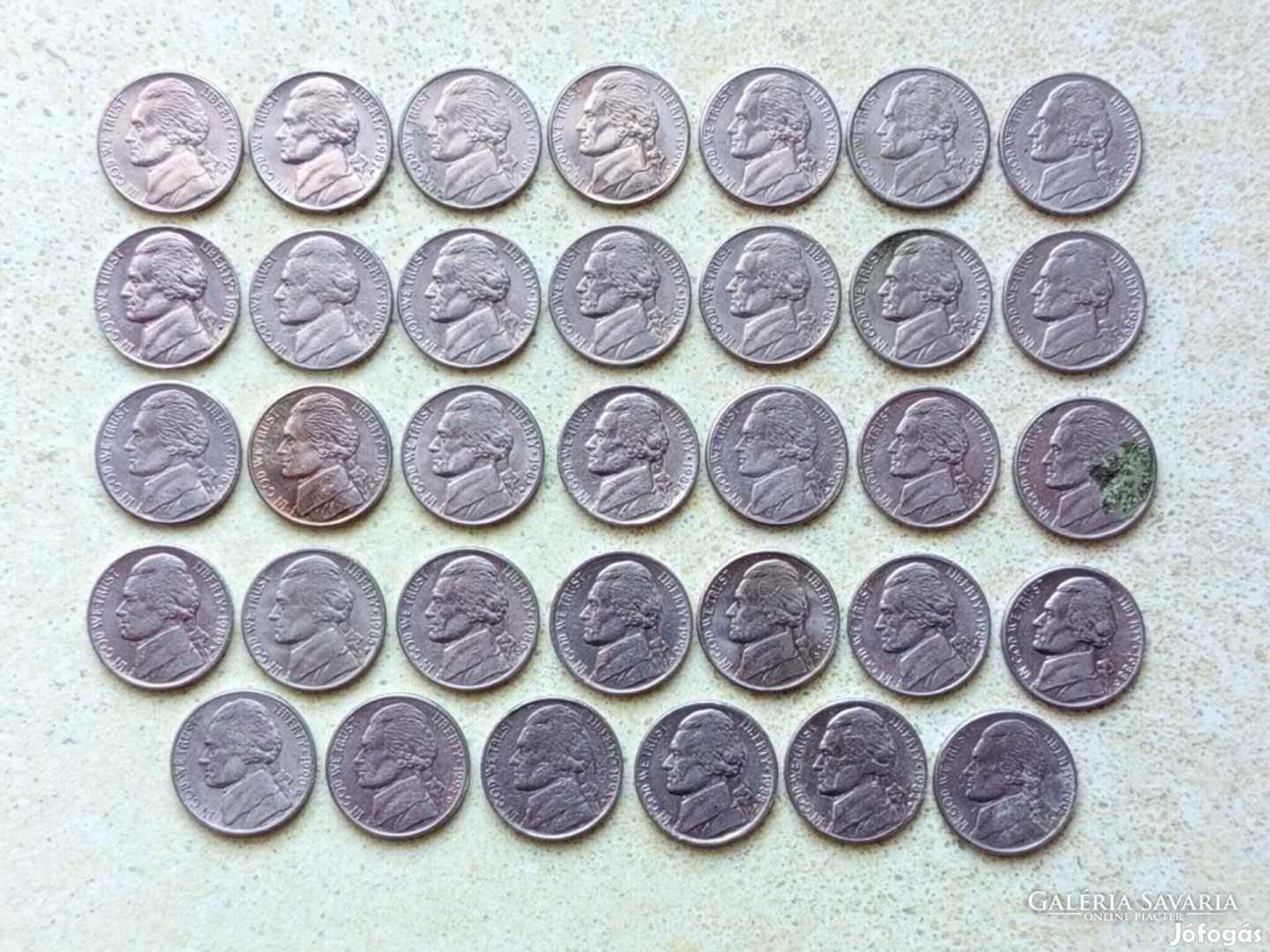 USA 34 db Különböző Érme 5 Cents Jefferson Nickel 1980-1999