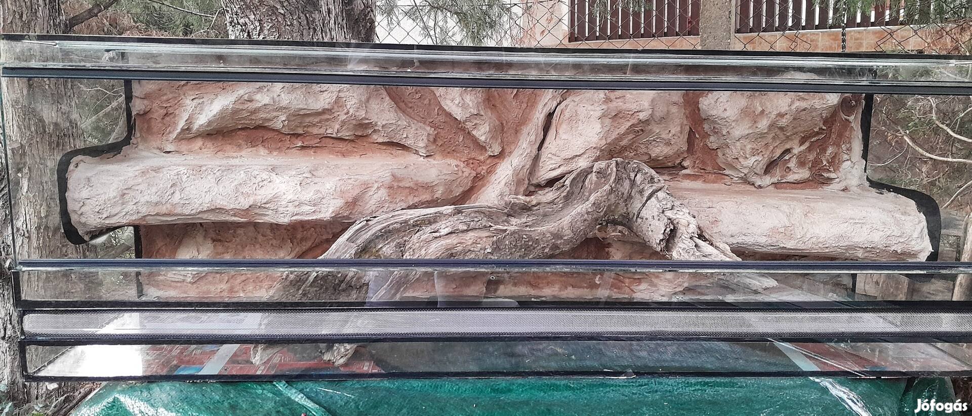 Új fekvő terrárium eladó beépitett fix 3d háttérrel napozókkal.