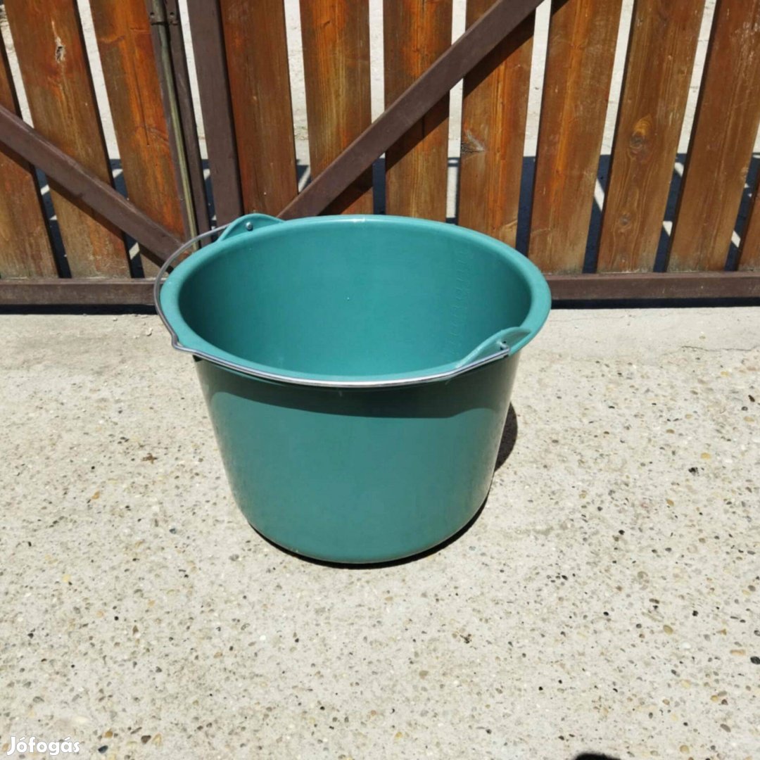 Új 20 liter műanyag vödör fém füles habarcsos kőműves anyag keverő