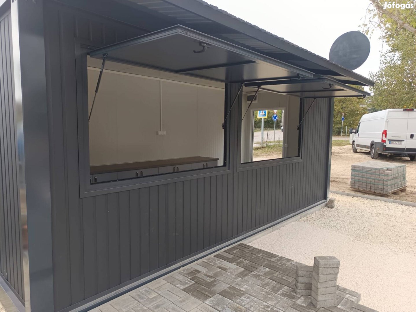 Eladó új büfékonténer, 240×600×281 cm méretben.