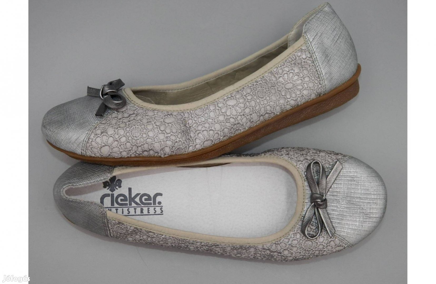 Új állapotú (címke és saját doboza nélküli) Rieker balerina. Talpbélése valódi bőr (puha, párnázott), felsőrésze szintetikus anyag. Ezüstös színű.