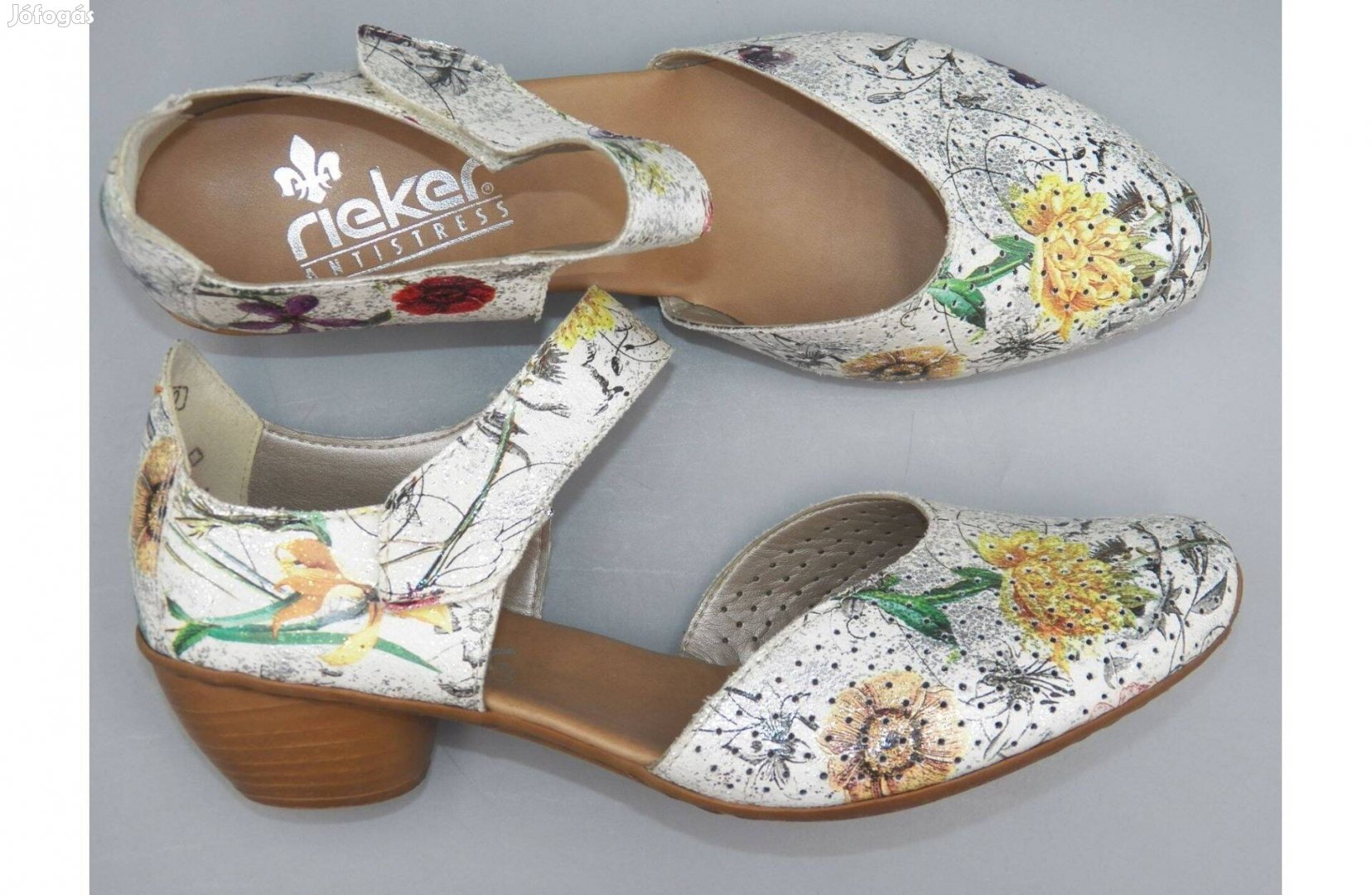 Új állapotú Rieker pántos cipő. Elől lyukacsos fazonú. Anyaga: műbőr. Csak felpróbálva volt.