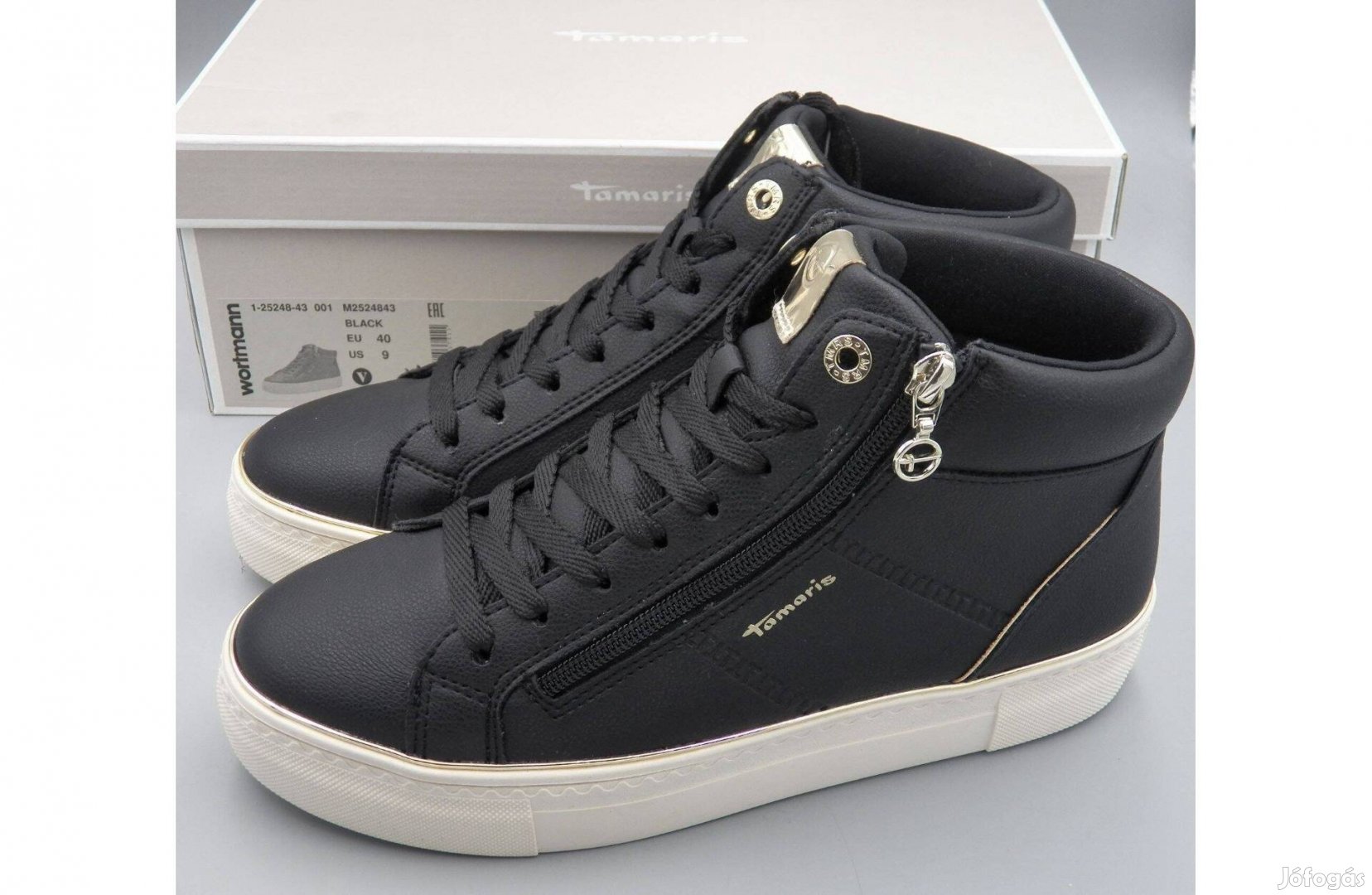 Vadonatúj állapotú Tamaris bakancs saját dobozával. Felsőrésze eco bőr, belül közepesen vastag textil bélése van és puha, párnázott , kivehető talpbetéte. Cipzáros-fűzős fazonú.