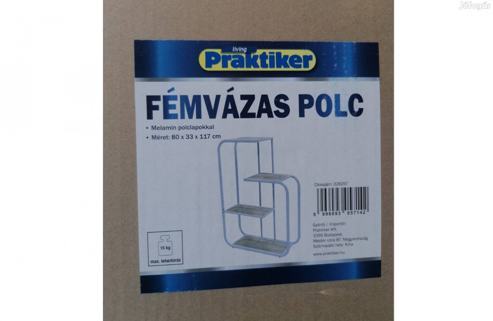 melamin polclapokkal. Teherbírása 15 kg.