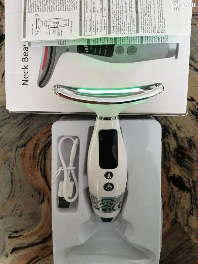 Nyak és arcmasszírozó 7 féle színnel, 3 féle rezgéssel és hővel, USB töltéssel. Fót,posta