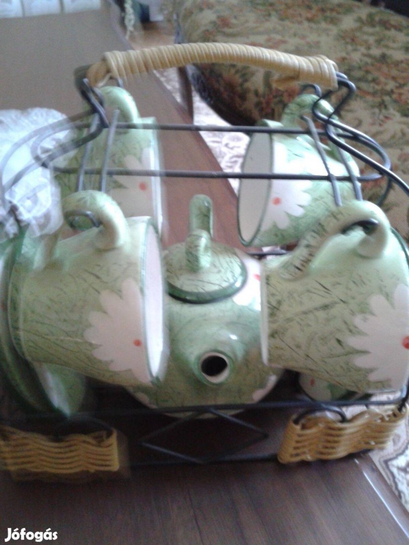 Új kerámia kávés készlet fém tartóval