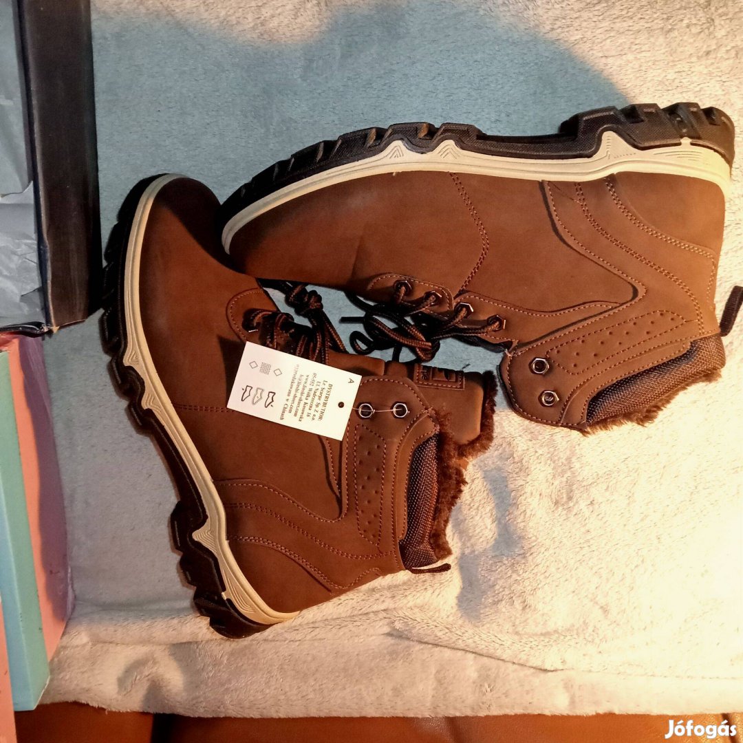 Új Férfi Bakancs 43-as Felsőrész ökológiai bőrből készült Oldalt cipzáras, elöl füzős bélelt bakancs Vastagabb, mintázott csúszásgátló talp szín - barna 43-as talpbetét hossza - 28,5 cm Helyben átvehető Posta fox szállitás van telefonon intézhető