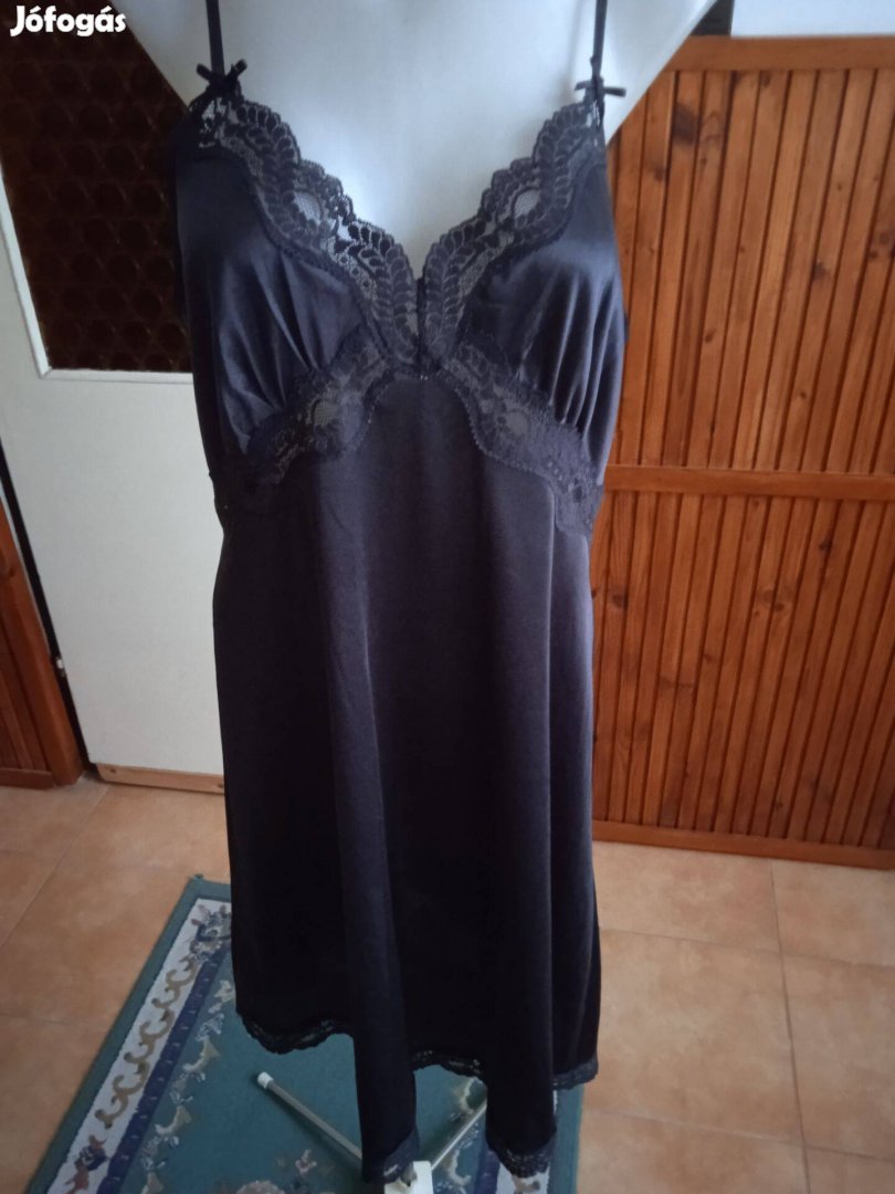 Eladó a fotón lévő fekete kombiné. Leterítve mérve: mell:46cm, der:46cm, csípő:58cm, hossza elöl a pánttól mérve:83cm.