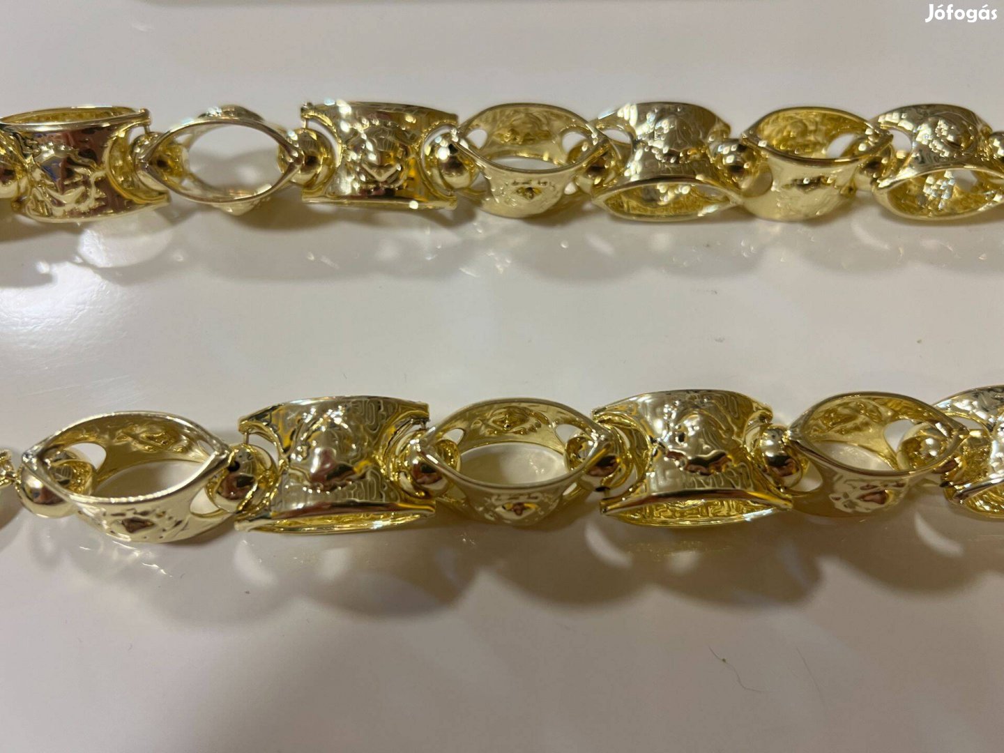 Eladó a képen látható újszerű pár alkalommal hordott nagy méretű 136 grammos nagyon mutatós baraka barakka arany színű nemesacél nyaklánc.