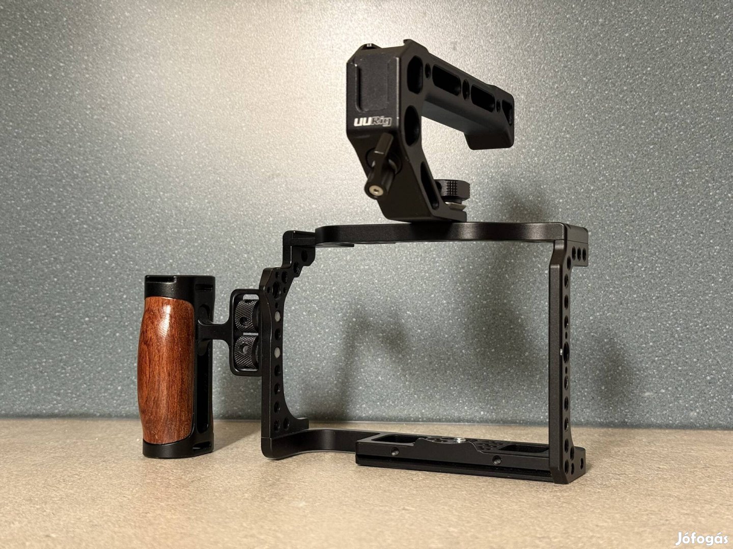 Cage, fa oldalmarkolat és felső markolat a szett tartalma. Mindegyik nagyon szép állapotú, sérülésmentesek. Kizárólag a váz védelme miatt voltak használva, de szerencsére ennek sem esett baja.